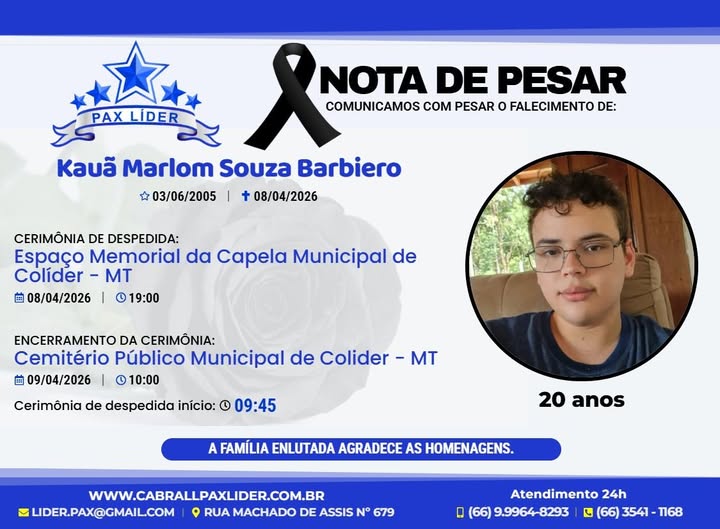A morte de um jovem sempre carrega um peso ainda maior. Interrompe planos, silencia risos e deixa um vazio impossível de preencher. Em Colíder, o luto não é apenas de uma família — é coletivo.