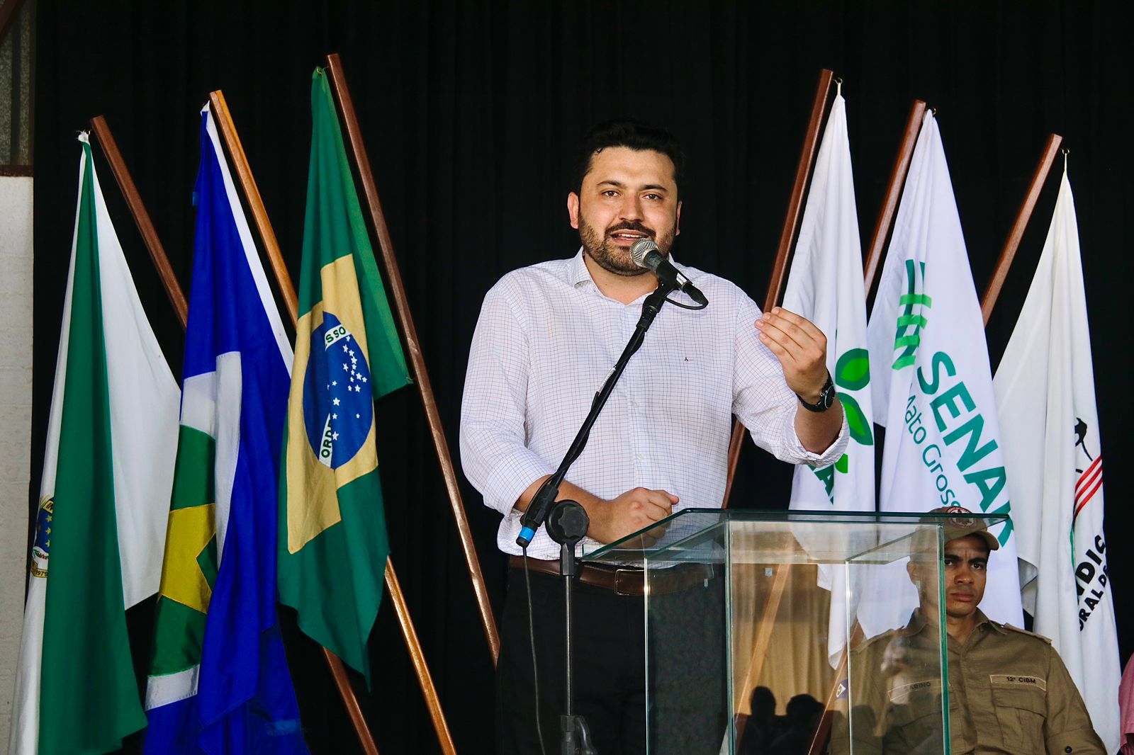 No evento dedicado ao candidato a prefeito Abílio Brunini (PL) nesta quinta-feira (17), com a presença da ex-primeira-dama do Brasil e presidente Nacional do PL,