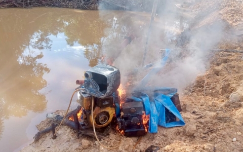 Policiais militares ambientais fecharam três áreas de garimpo ilegal, esta semana, nos municípios de Apiacás e Paranaíta, após alertas da plataforma ambiental. Em um dos