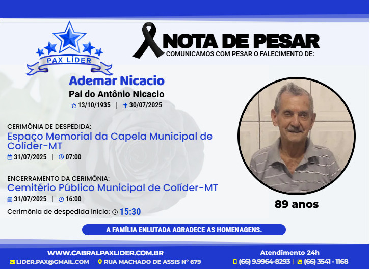 Por: Pagina do Nortão Página do Nortão – Valorizando a história de quem construiu Colíder Colíder amanheceu entristecida nesta quarta-feira com a notícia do falecimento