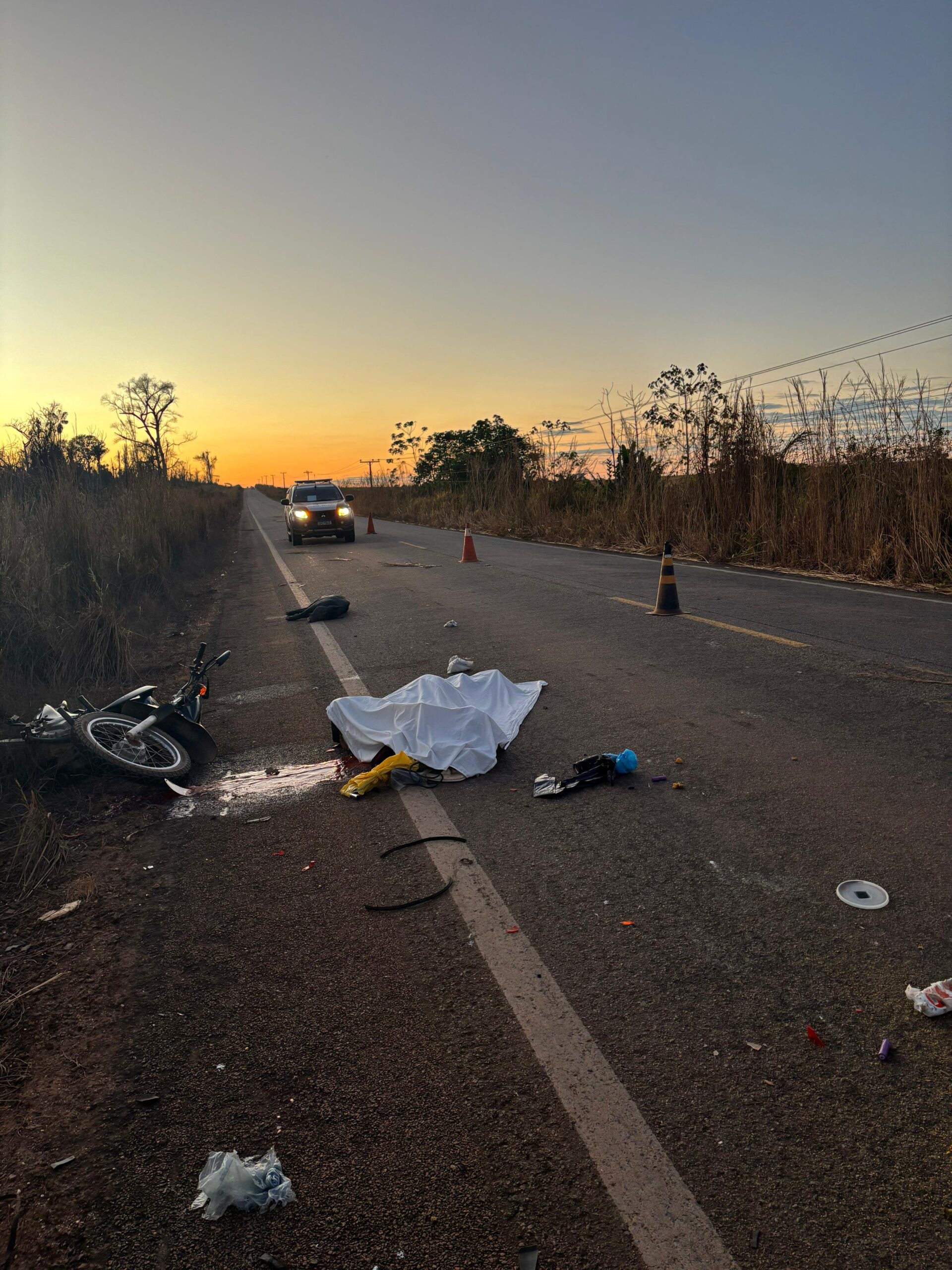 Homem identificado como W.W.O., 34 morreu em um acidente de trânsito, na MT-246, em Barra do Bugres, na madrugada deste sábado (19). Carro em que